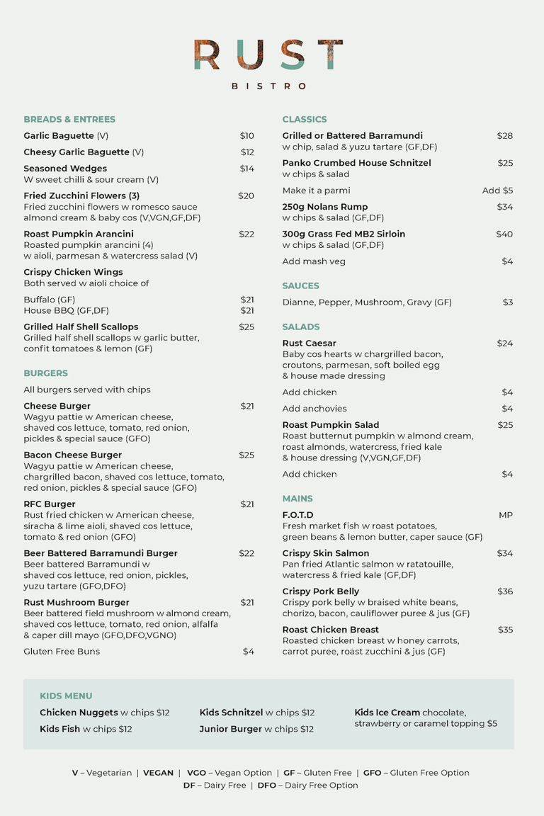 Bistro Menu